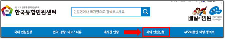 #1. www.allminwon.com <== 홈페이지를 방문하여 상단 카테고리의 [해외 민원신청]을 클릭!