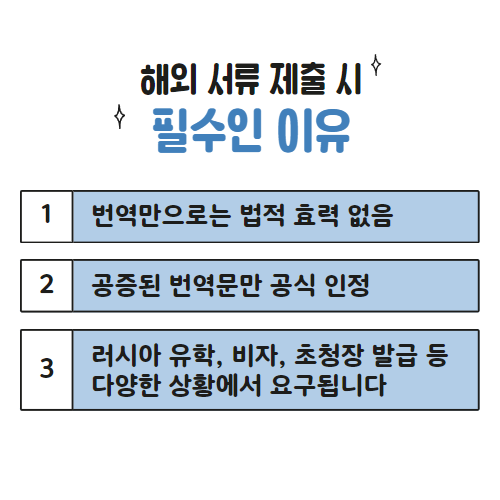 ✅ 러시아 기관 제출용 문서는 번역공증이 필수