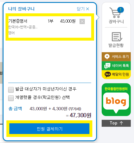 '민원 결제하기'를 누른다.