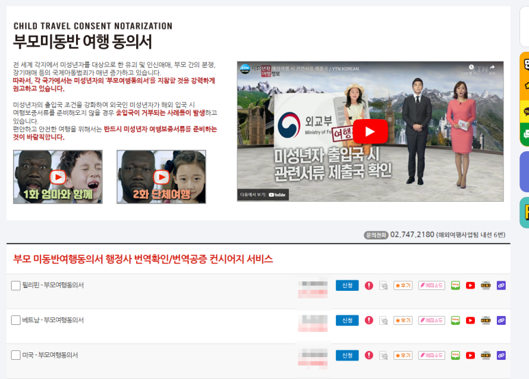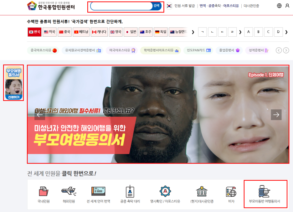 다양한 국가의 부모미동반여행동의서 서류를 보실 수 있습니다.