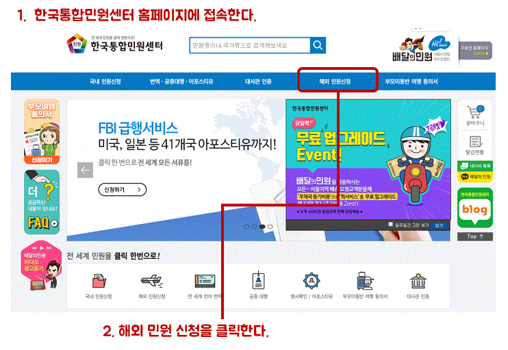 배달의 민원, 전세계 민원서류 발급신청, 번역, 공증촉탁대리, 외교부 아포스티유, 영사확인, 전세계 대사관확인, 해외배송까지 원스톱, 전세계 최초의 글로발 민원 토탈 원스톱 서비스