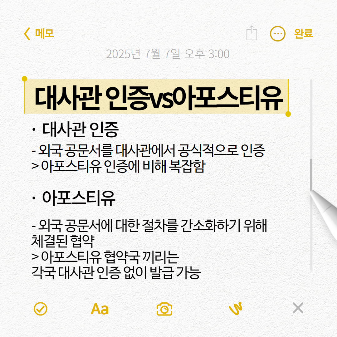 헷갈릴 수 있는 아포스티유와의 차이점에 대해 알려드리면서