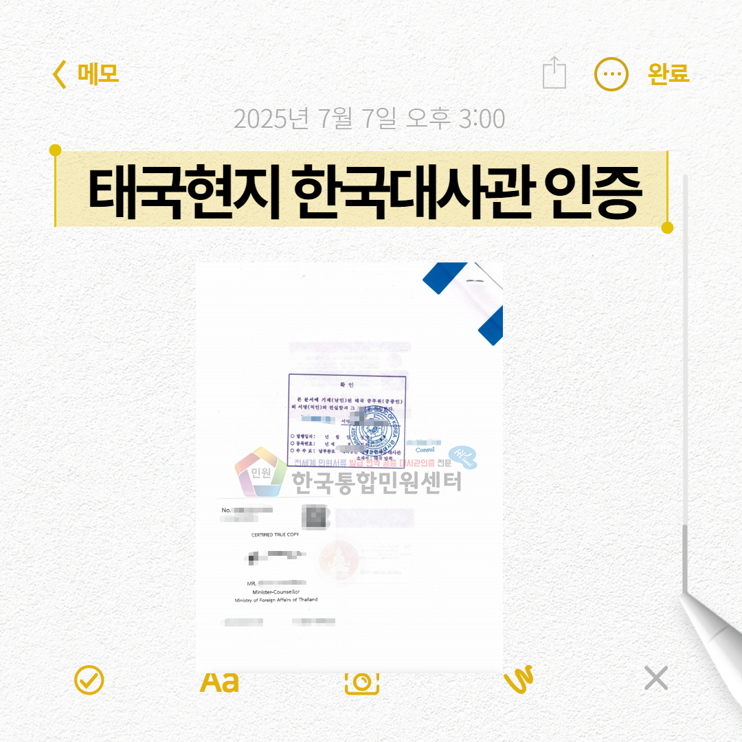 즉, 태국 현지에 있는 기관의 영사확인을 받아야합니다.