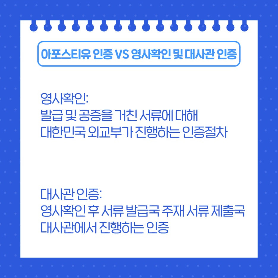 이 절차를 거칠 경우 서류는 해당 국가에서도 한국과 동일한 효력을 가지게 됩니다.