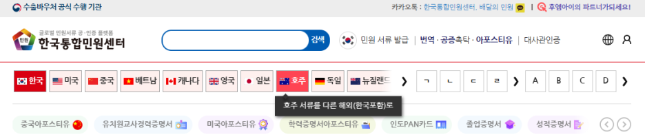 대한민국과 호주는 아포스티유 협약 가입국이기에
