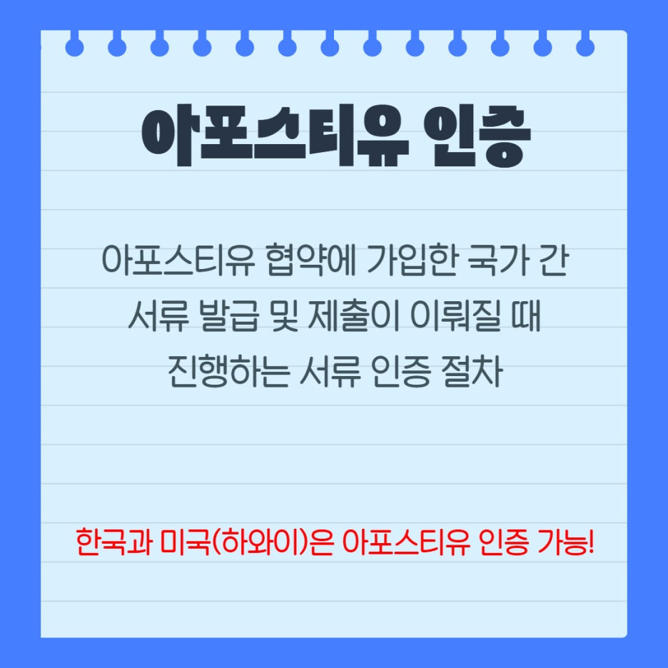 한국과 하와이(미국)은 아포스티유 협약 가입국이기에