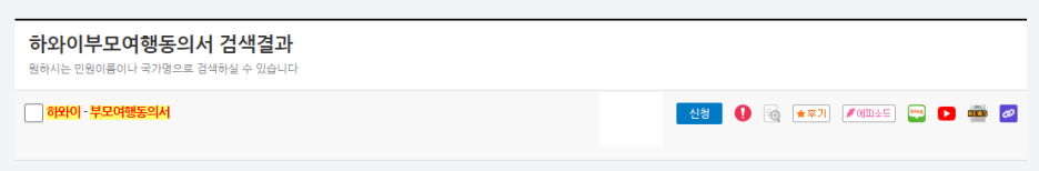 (2) 검색창에 '하와이', '하와이 부모여행동의서' 검색