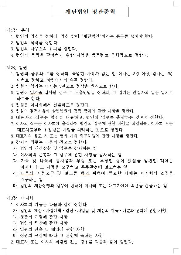 하지만 오늘은 '법인 정관' 즉 1번 과정에 대해 집중적으로 살펴보겠습니다.