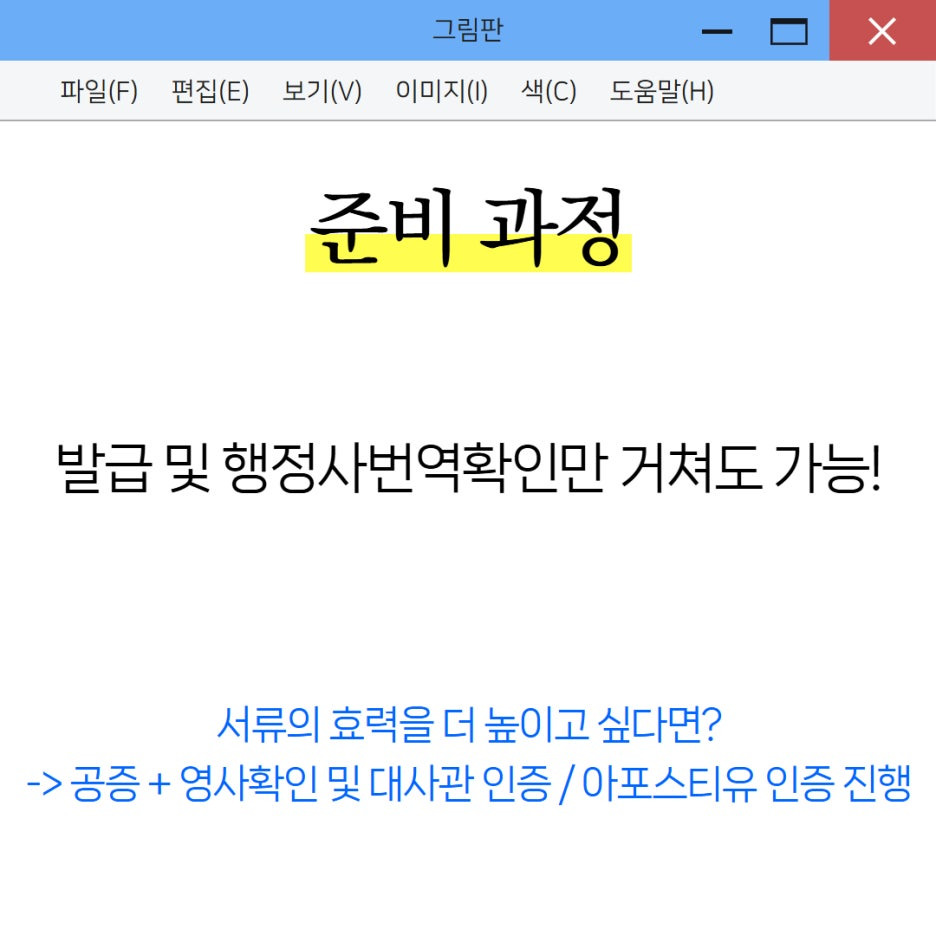 혹시 서류의 효력을 강화하고 싶다면 공증 및 인증과정을 거쳐야합니다.