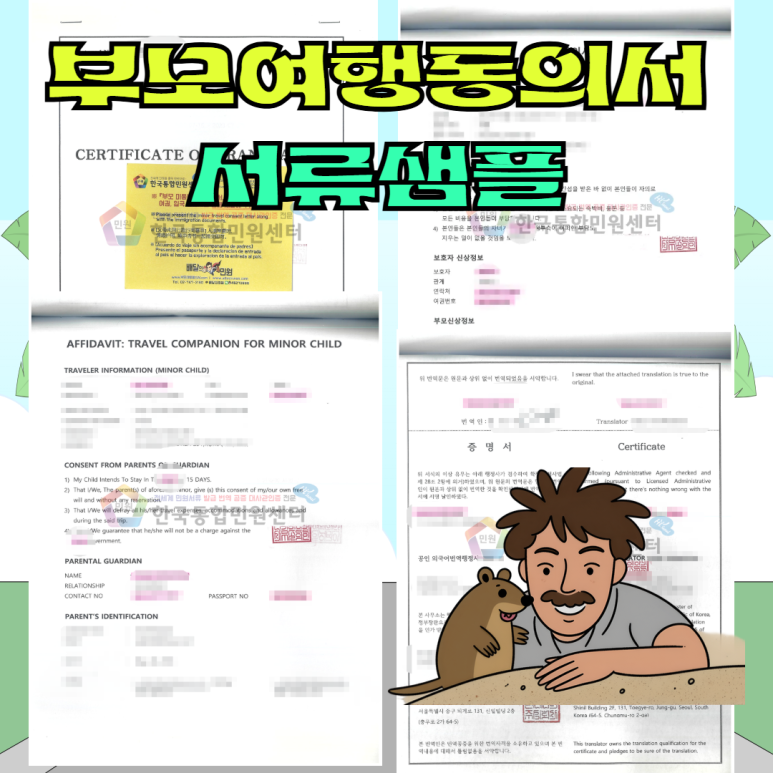 부모여행동의서가 없을 경우에 입국이 거절될 수 있으니 반드시 사전에
