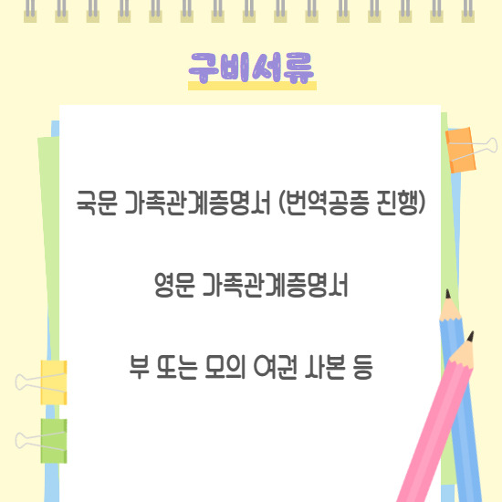 ※가족관계증명서는 주로 부모 한 명과 출국할 때 요구받을 수 있습니다