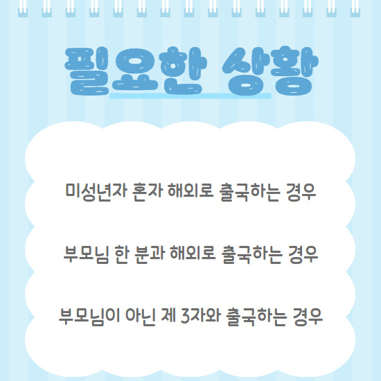 보통 혼자 가거나 제3자와 출국을 하게 된다면 준비해야하지만