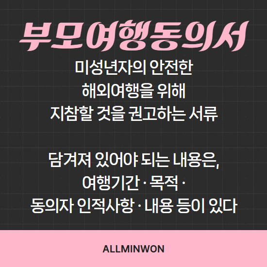 미성년자 여행 보증 서류인 부모여행동의서를 준비하는 것이 바람직한데요