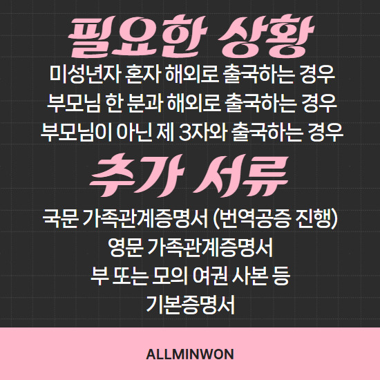 그리고 부모여행동의서 외에도 준비해야 하는 서류도 있습니다