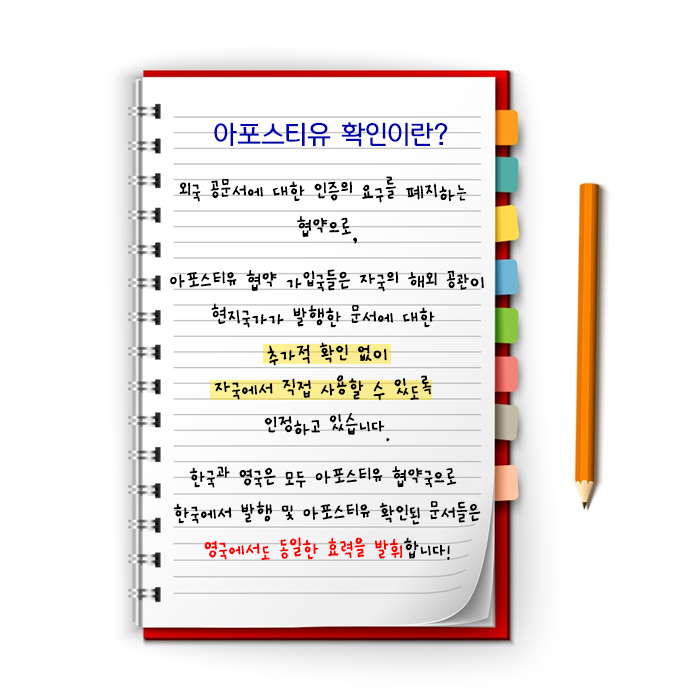 영국에 제출 및 사용하기 위해서는 아포스티유 확인을 받아야해요!