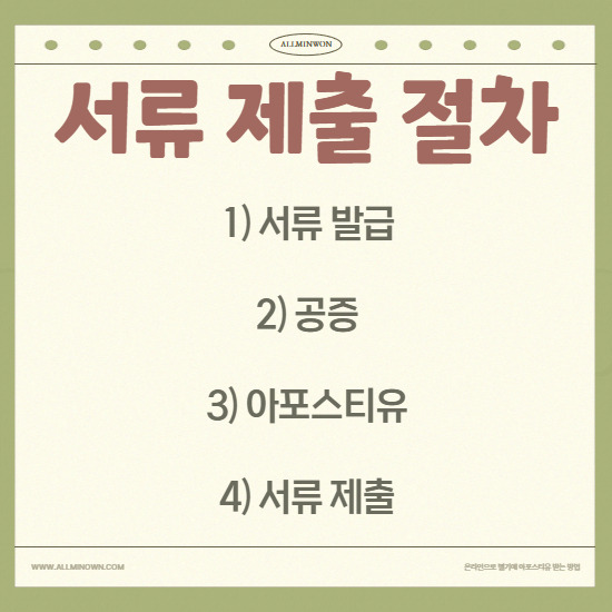 서류 발급 ▶ 공증 ▶ 아포스티유 ▶ 서류 제출