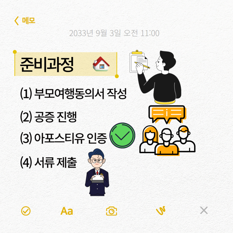두 번째는 공증 진행입니다. 작성한 부모여행동의서가 실제로 부모가 작성함을 증명하기 위해