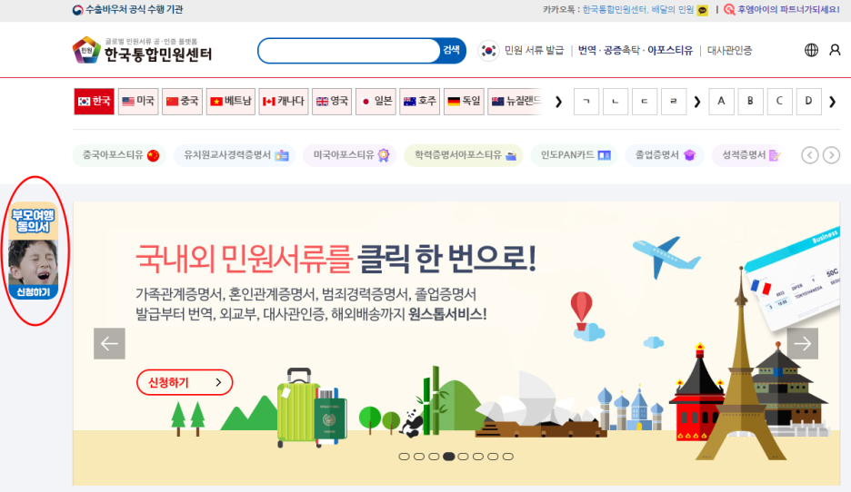 (2) 홈페이지에서 부모여행동의서 배너 클릭