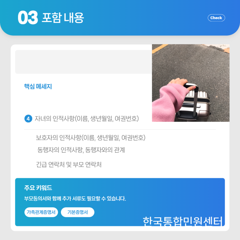 먼저 자녀의 성명, 생년월일, 여권번호, 국적과 같은