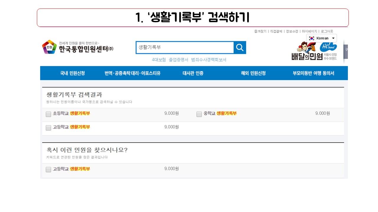 어떻게 배달의민원으로 '생활기록부 발급 -> 번역 -> 번역공증 촉탁대리'가 이루어지는지 보여드리겠습니다.