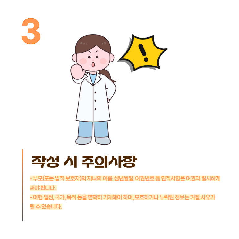 부모여행동의서를 작성할 때는, 자녀가 보호자 없이 해외에 나갈 수 있도록