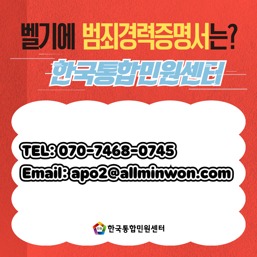 한국통합민원센터에서는 벨기에 현지 범죄경력서 발급부터 아포스티유까지