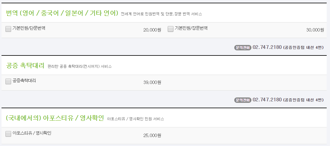 번역에 대한 공증 촉탁 대리 상품 신청방법에 대해서