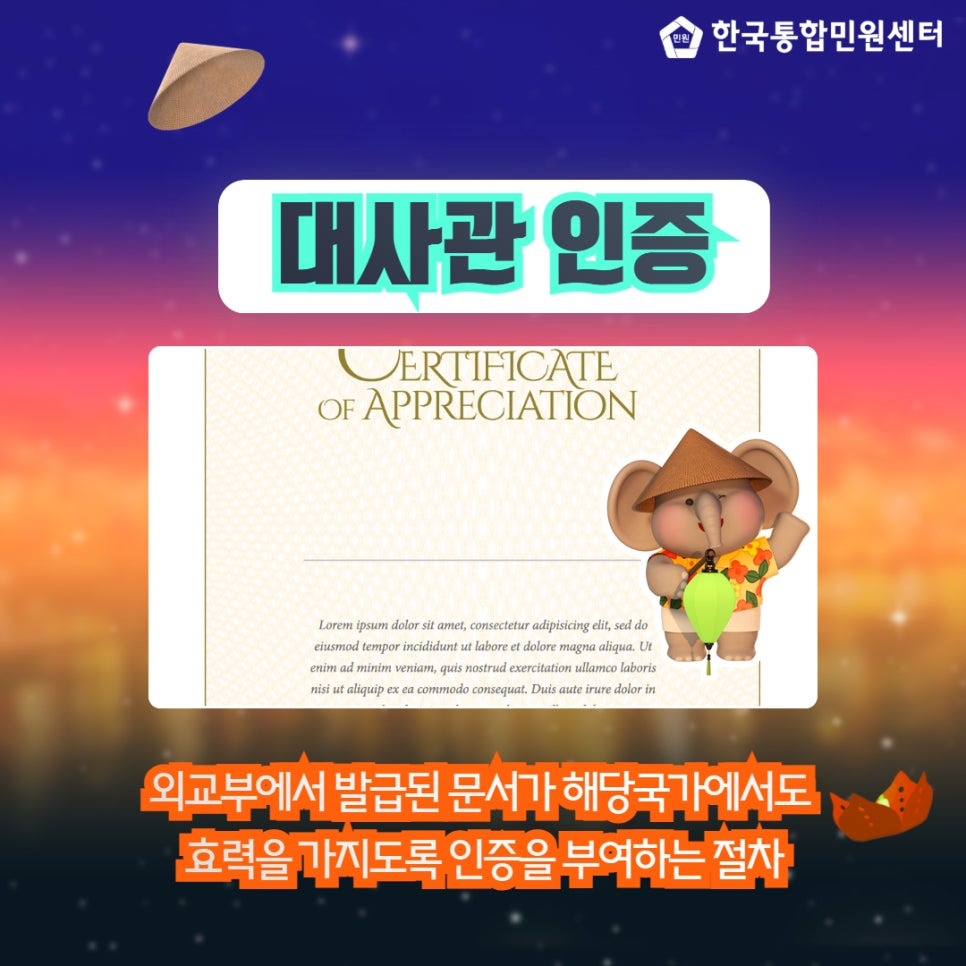 즉 한국 기관에서 발급한 서류를 베트남 정부에서도 신뢰할 수 있도록, 베트남 대사관에서