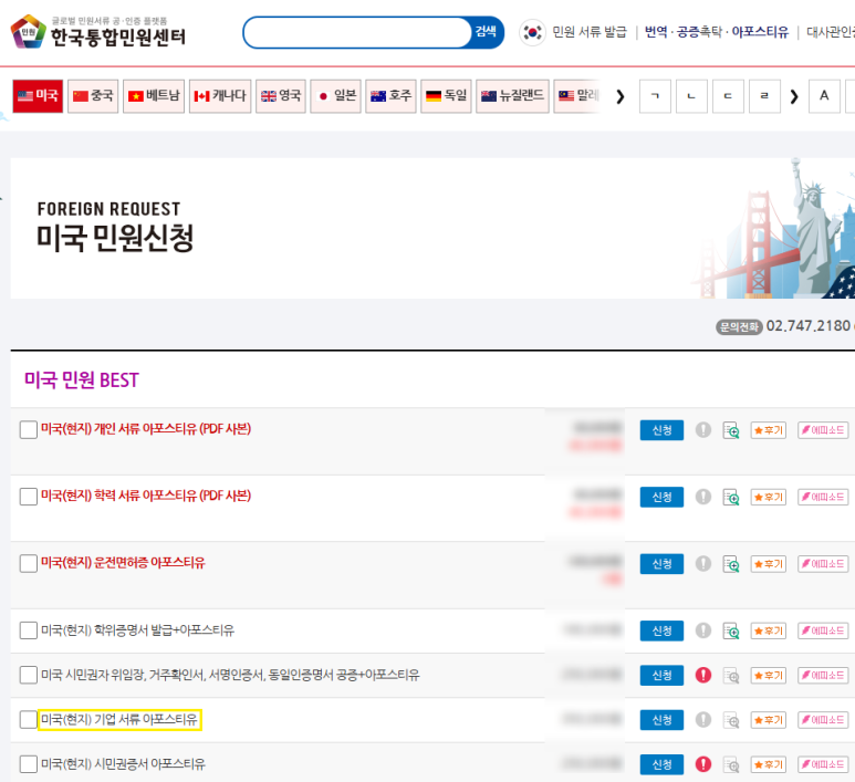 본사 법인과 관련된 서류를 미국 아포스티유 인증을 받아