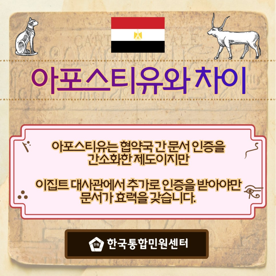 그러나 이집트의 경우 대한민국과 아포스티유 협약국이 아니기에