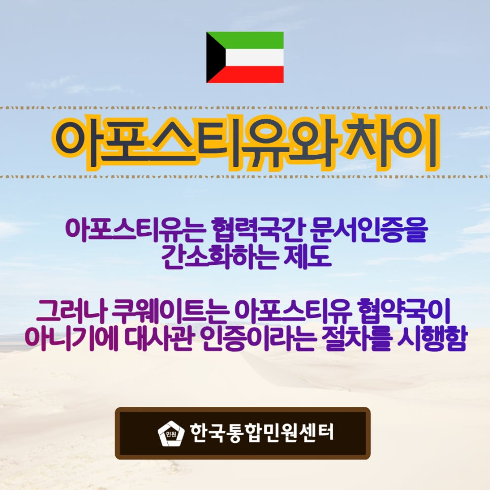 그러나 쿠웨이트의 경우 대한민국과 아포스티유 협약국이 아니기에