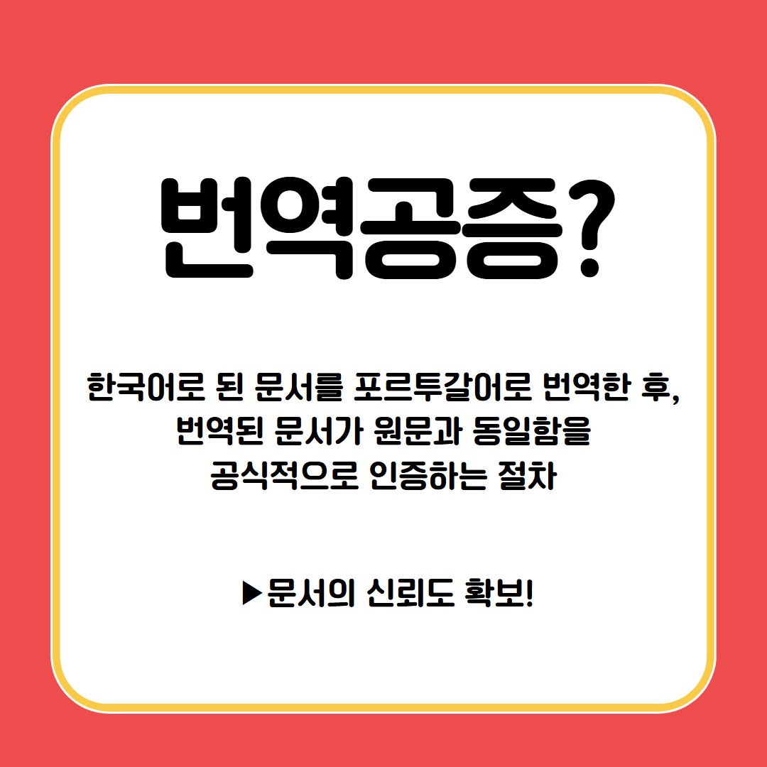 번역공증이란 한국어로 된 문서를 포르투갈어로 번역한 후