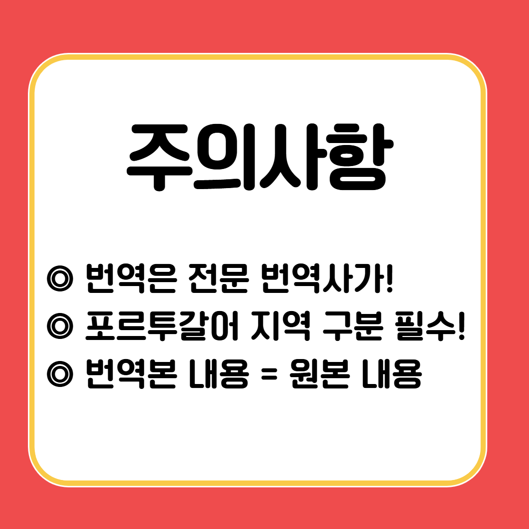 그래서 포르투갈어를 사용하더라도 어느 나라에 제출하는지에 따라 번역을 다르게 진행해야 합니다!