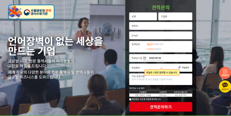 글로벌 시대 맞춤형 언어서비스를 제공하는 전문가 기업 글로벌 시대, 다양한 언어가 필요할 때 맡겨 주십시오. 전문가들이 여러분의 고민을 해결해 드립니다.