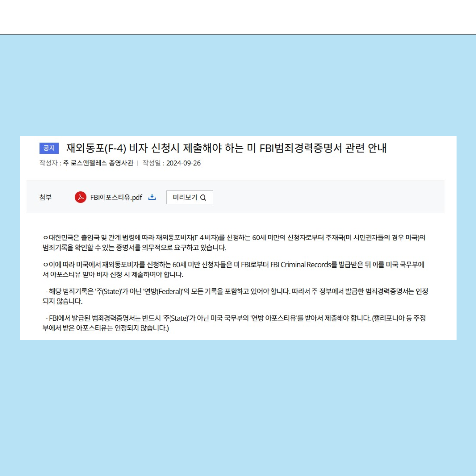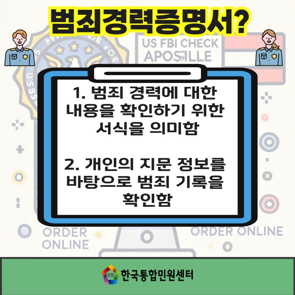 미국에서 유학 / 이민 / F4비자 등에서 자주 사용되는 자료가 범죄경력증명서이죠?