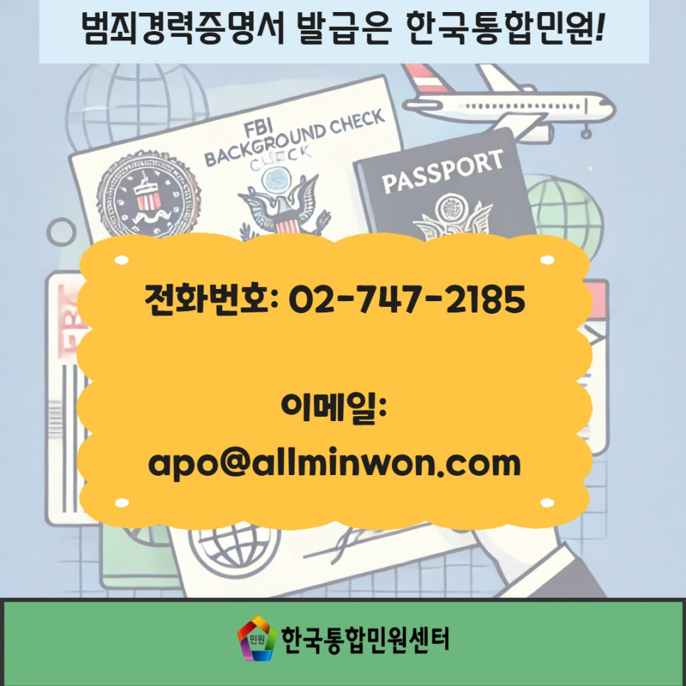 ※한국통합민원센터에서 미국 범죄경력증명서 간편하게 대행 신청 가능합니다!