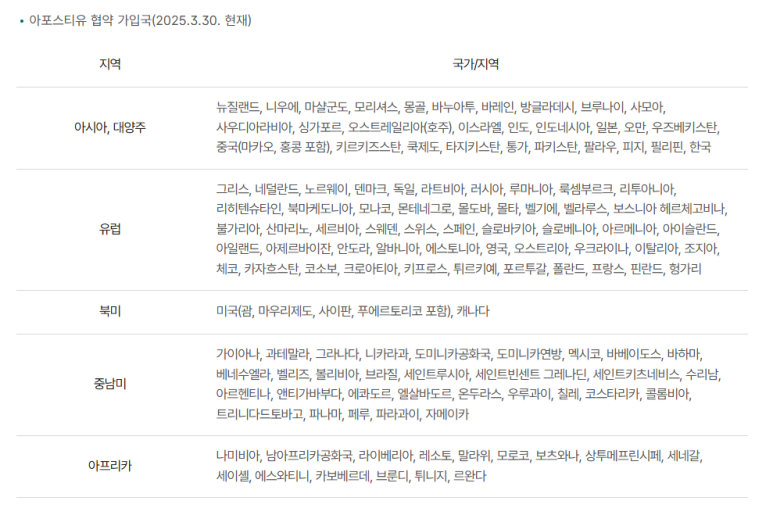 *아포스티유 = 외국 공문서에 대한 인증 절차를 간소화하기 위해 체결된 국제 협약