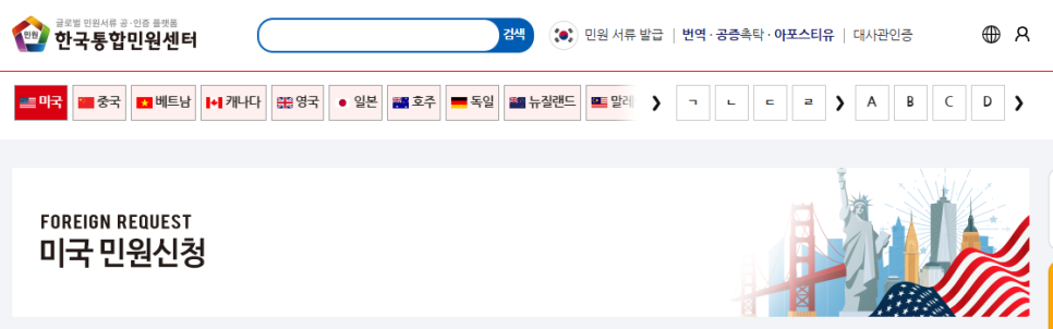2. [미국 결혼증명서] 검색 or 상단 국가 [미국] 배너 클릭