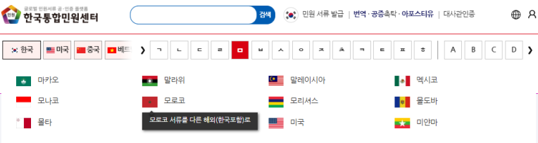 한국에서 발급된 서류를 모로코에 제출하거나,