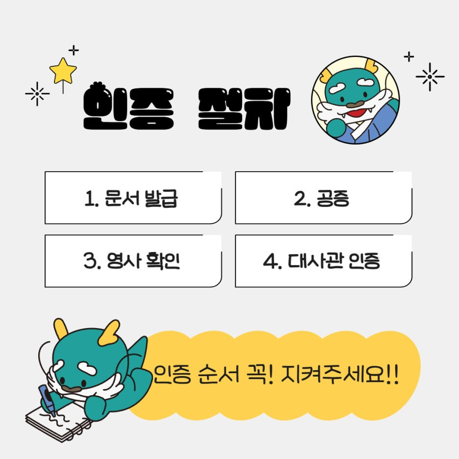 문서 발급 → 공증 → 영사확인 → 대사관 인증