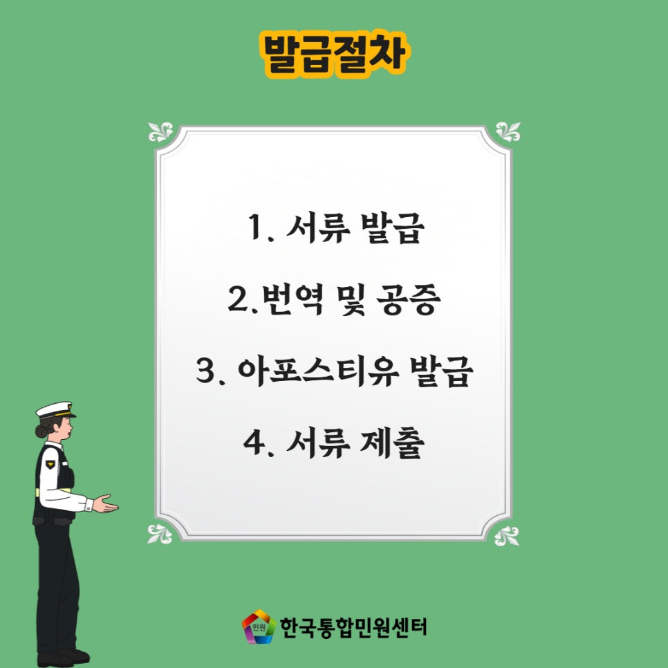 아포스티유 인증의 경우 다음과 같은 절차를 통해 진행됩니다.