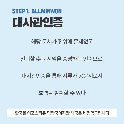한국에서 받은 서류를 태국에 학업·사업·개인적으로 제출해야 한다면 필요한 대사관인증,