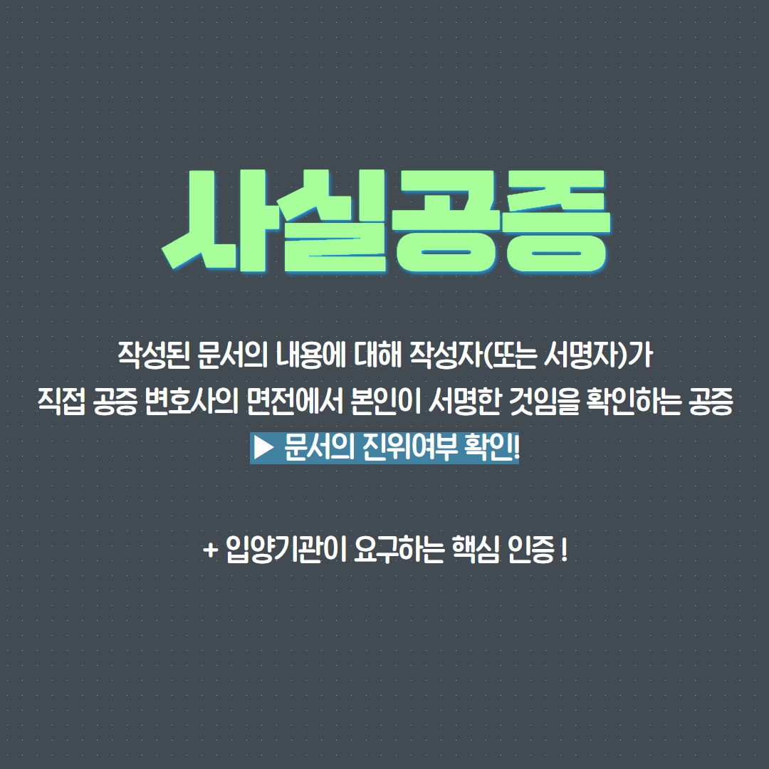그래서 입양동의서 사실공증은 입양기관이 요구하는 핵심 인증이기도 합니다!