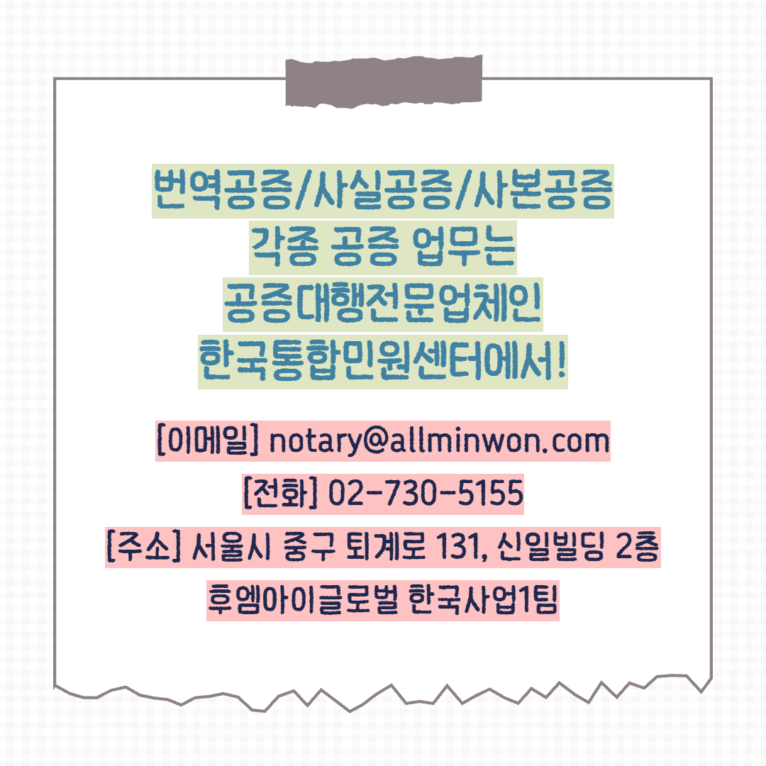번역도 꼼꼼히 진행해야해서 공증대행 전문 업체에 맡기시는 것이 좋습니다!