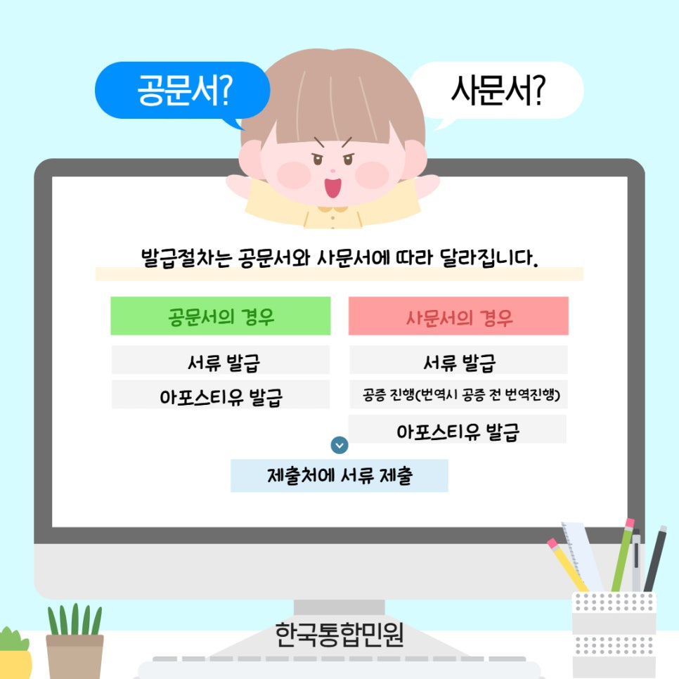 발급절차는 공문서와 사문서에 따라 다릅니다.