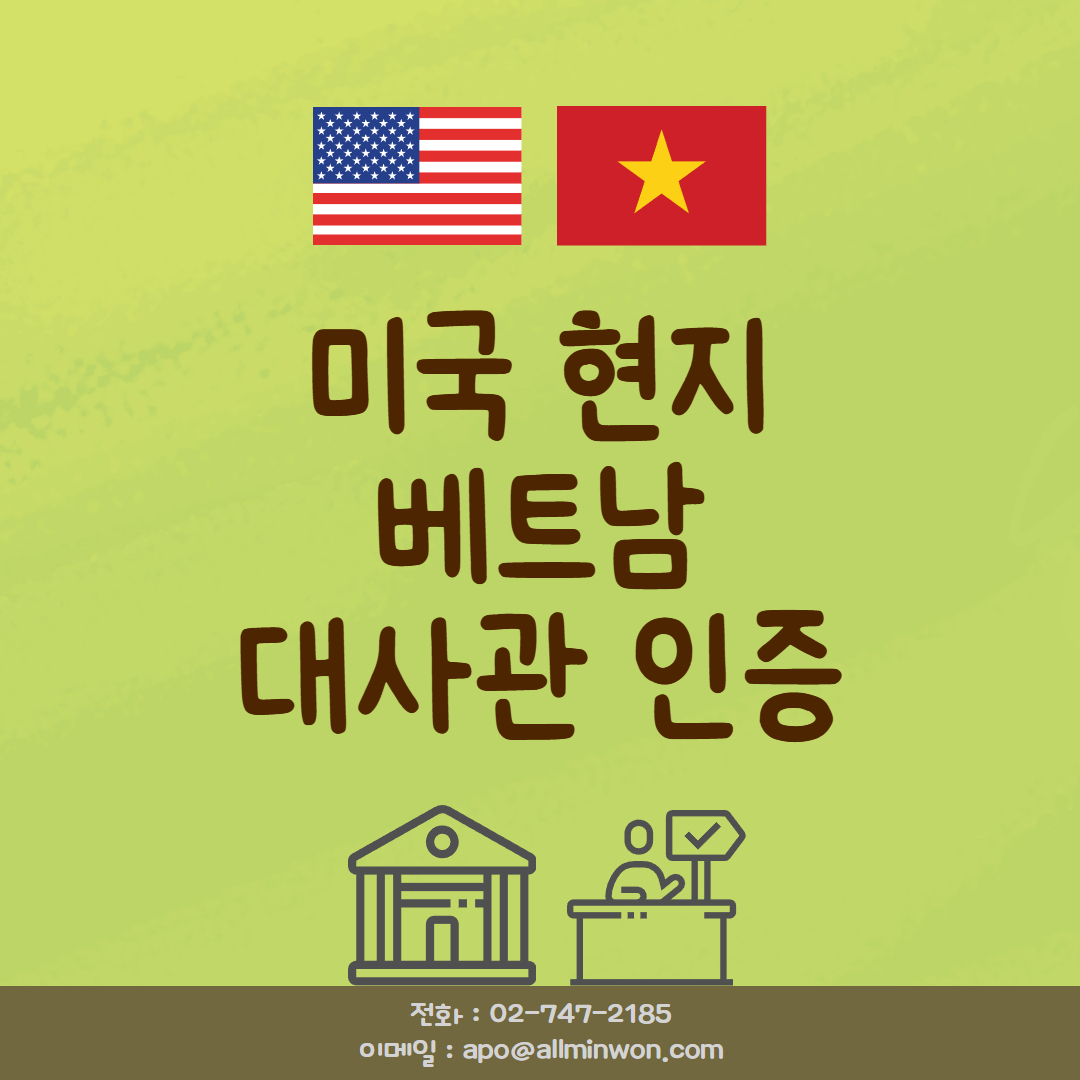 [미국 주재 베트남 대사관 인증] 전세계 민원서류 발급부터 번역, 공증, 공증촉탁대행, 외교부확인, 대사관인증, 해외배송까지 '원스톱서비스', 서울시 선정 우수브랜드!