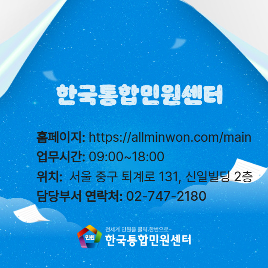 그런 분들을 위해 서울시 선정 우수 브랜드 한국통합민원센터를 통해 복잡한 문제를 해결해보세요!
