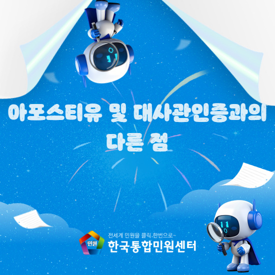 오늘은 이렇게 아포스티유와 다른 서류들의 차이점을 알아보았습니다.