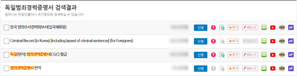 2. '[국가명] + 범죄경력증명서' 검색 혹은 신청 국가 배너 클릭