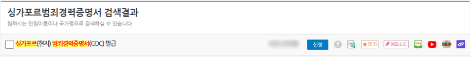 2. '싱가포르 범죄경력증명서' 검색 혹은 [싱가포르] 배너 클릭